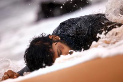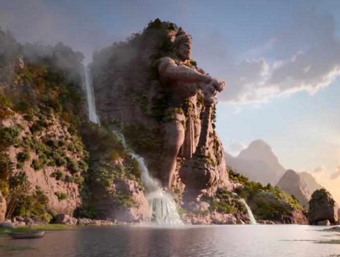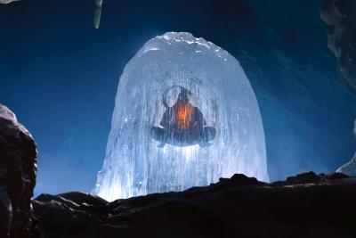 टीज़र के अंतिम दृश्यों में बर्फ से बने शिवलिंग के अन्दर भगवान हनुमान को एक आध्यात्मिक ध्यान करते हुए दिखाया गया है, बैकग्राउंड में राम-राम की स्तुति सुनाई देती है। (फोटो: Youtube)
