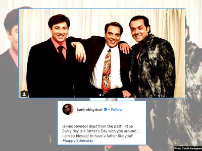 बॉबी देओल ने पिता धर्मेंद्र और भाई सनी के साथ फोटो शेयर की।