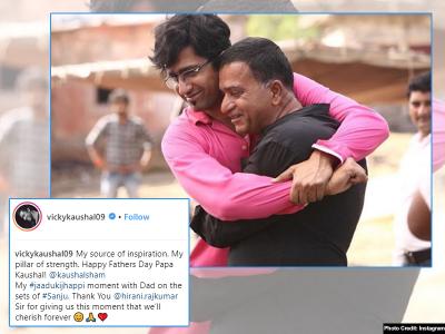 विक्की कौशल ने अपने पिता के साथ 'जादू की झप्पी' वाली फोटो शेयर की।
