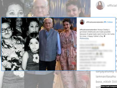रवीना टंडन ने अपने पिता के साथ अपनी बचपन की फोटो शेयर की।