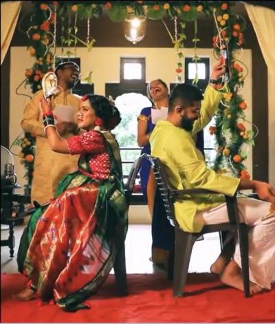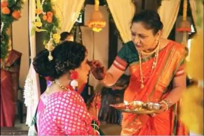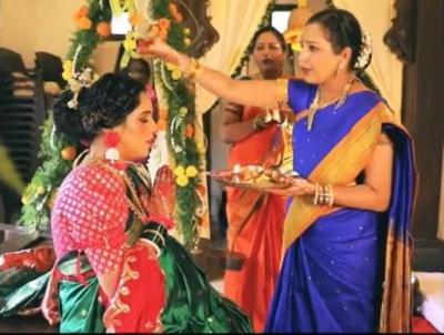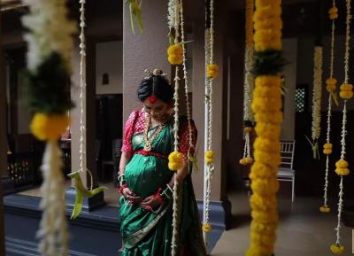 ढेपे वाडा में उर्मिला ने मराठी अंदाज में दोहल भोजन का आयोजन किया।