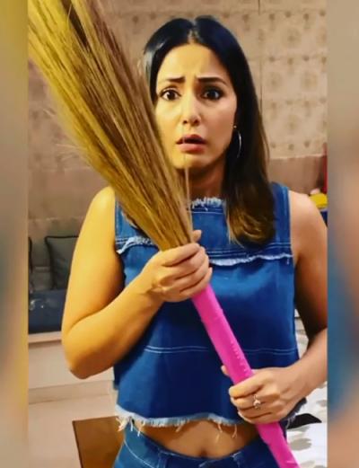 हिना ने अपन इंस्टाग्राम अकाउंट से शुक्रवार को एक वीडियो शेयर की, जिसमें उन्होंने बताया कि वह कैसे घर का काम कर रही हैं।