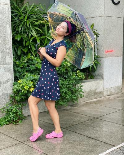 इन तस्वीरों में हिना खान बारिश का मजा लेती नजर आ रही हैं।