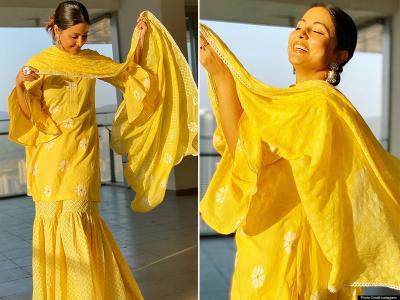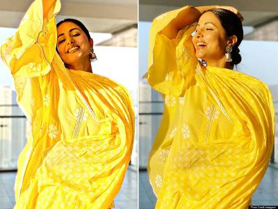 हिना खान ने अपने इंस्टाग्राम पर अपनी कुछ तस्वीरें शेयर की हैं । पीले रंग की ट्रेडिशनल ड्रेस में वो बेहद खूबसूरत लग रही हैं।
