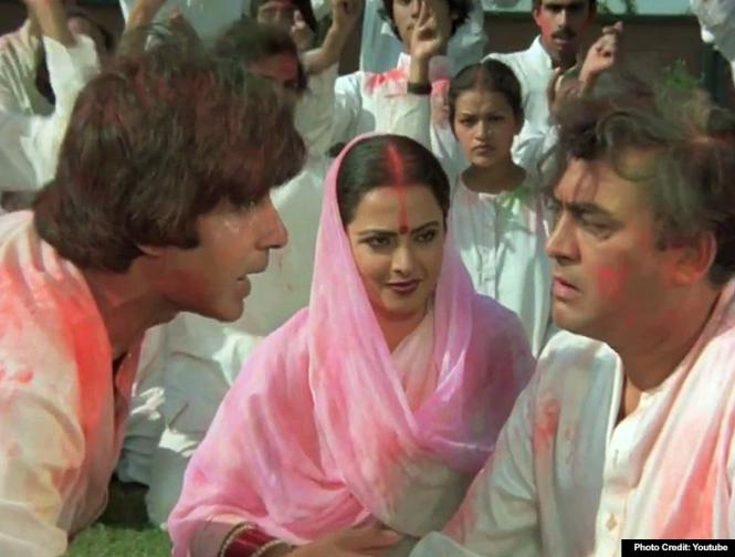फिल्म 'सिलसिला', रंग बरसे, भीगी चुनरवाली रंग बरसे, अमिताभ बच्चन पर फिल्माए गए इस गाने में उनके साथ रेखा भी नजर आती हैं।
