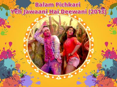 बालम पिचकारी: फिल्म यह जवानी है दीवानी (2013) दीपिका पादुकोण और रणवीर कपूर के उपर फिल्माया गया यह गाना शाल्मली खोलगडे और विशाल ददलानी ने गाया था। इस गाने का म्यूजिक आपको झूमने पर मजबूर कर देगा।
