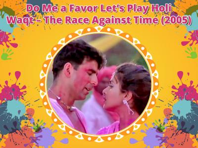 डु मी अ फेवर लेट्स प्ले होली: फिल्म वक्त (2005) अक्षय कुमार तथा प्रियंका चोपड़ा की केमिस्ट्री वाला फिल्म 'वक्त' का यह गाना बहुत जबरदस्त है। इस गाने को अनु मलिक और सुनिधि चौहान ने गाया था।