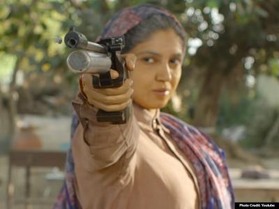 फिल्म सांड की आंख में सांड की आँख में भूमि पेडनेकर और तापसी पन्नू ने शूटर का किरदार किया है, फैंस को उनका ये लुक काफी पसंद आ रहा है।
