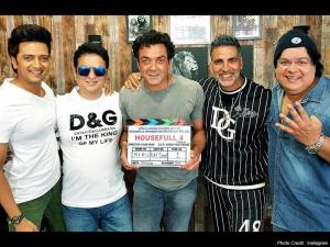 1 / 7हाउसफुल सीरीज की चौथी फिल्म हाउसफुल 4 की शूटिंग शुरू हो चुकी है।2 / 73 / 7पहले पार्ट में इनके अलावा अर्जुन रामपाल, दूसरे पार्ट में जॉन अब्राहम और सीरीज की तीसरी फिल्म में अभिषेक बच्चन थे। अब अभिषेक बच्चन की जगह अभिनेता बॉबी देओल ने ले ली है।4 / 7कोरियोग्राफर एवं फिल्म निर्माता फराह खान ने अभिनेता अक्षय कुमार, बॉबी देओल और रितेश देशमुख के साथ 'हाउसफुल 4' के एक गाने की शूटिंग की है।5 / 7इस वक्त फिल्म की शूटिंग लंदन में चल रही है।6 / 7साजिद नडियाडवाला द्वारा निर्मित 'हाउसफुल 4' इसी फ्रेंचाइजी की चौथी फिल्म है। इस फिल्म के साथ साजिद खान वापसी कर रहे हैं।7 / 7वहीं इस फिल्म में कृति सनोन, पूजा हेगड़े और कृति खरबंदा जैसी खूबसूरत अभिनेत्रियां हैं।
