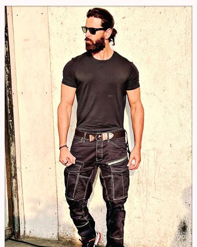 तस्वीरों में ऋतिक ब्लैक कार्गो जींस के साथ ब्लैक टीशर्ट में बेहद दमदार लुक में नजर आ रहे हैं। (फोटो: इंस्टाग्राम)