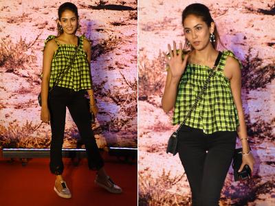 शाहिद कपूर की पत्नी मीरा ग्रीन ड्रेस में यहां पहुंची थीं