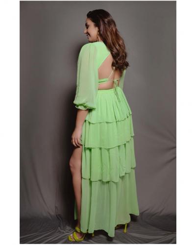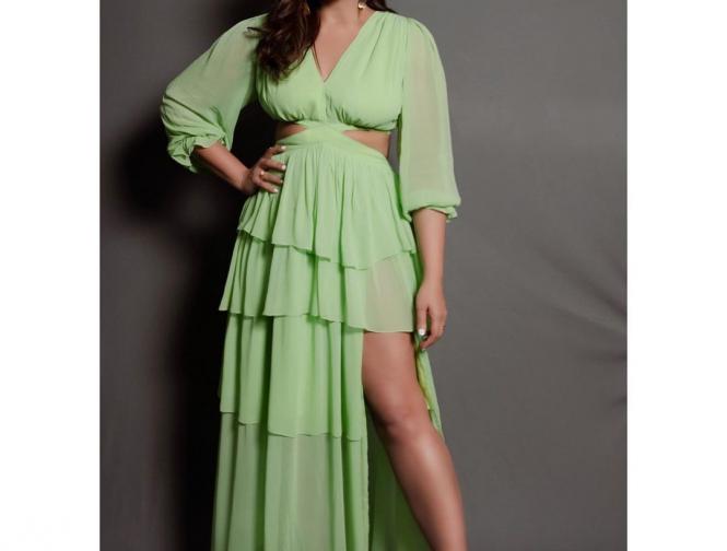 इन तस्वीरों में हुमा लाइट ग्रीन कलर का रिवीलिंग वनपीस पहने नजर आईं, जिसमें वह काफी ग्लैमरस लग रही हैं। (फोटो: इंस्टाग्राम)