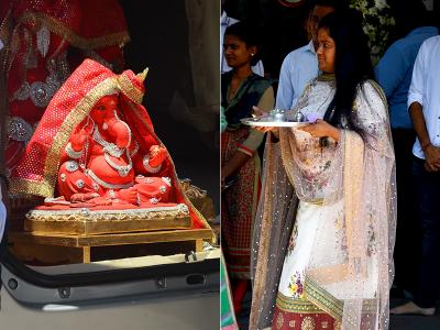सलमान खान की बहन अर्पिता और अलवीरा ने घर में की गणपति की स्थापना, देखें तस्वीरें