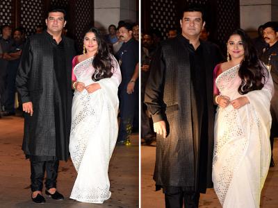 एक्ट्रेस विद्या बालन अपने पति के साथ सगाई समारोह में पहुंचीं।