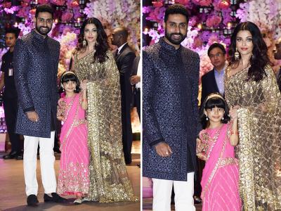 आकाश अंबानी की इंगेजमेंट पार्टी में ऐश्वर्या राय बच्चन अपने पति अभिषेक बच्चन के साथ पहुंचीं।