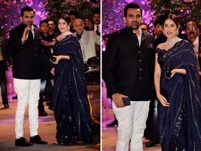 ज़हीर खान और उनकी पत्नी सागरिका घाटगे भी इस सगाई समारोह में नजर आए।