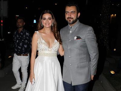 बोल्ड ड्रेस के साथ दीया मिर्जा पति साहिल संग हुईं स्पॉट, देखें इस जोड़ी की क्यूट pics