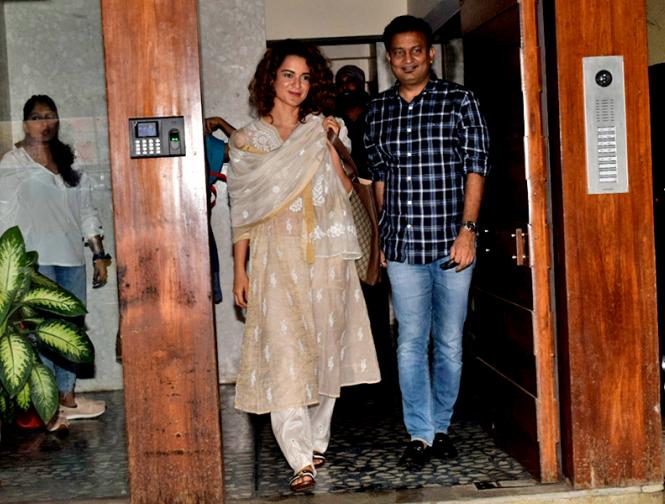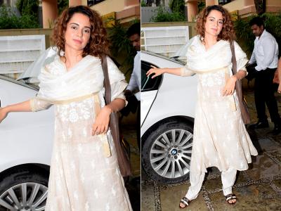 कंगना इस दौरान क्रीम कलर के सूट में नजर आईं।