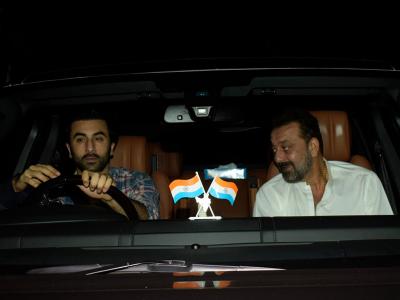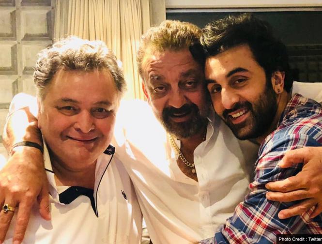 रणबीर कपूर संजय दत्त और आलिया भट्ट के साथ पापा ऋषि कपूर के घर नजर आए।