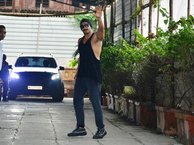 जिम के बाहर बाइसेप्स दिखाते नजर आए रणवीर सिंह, देखें तस्वीरें
