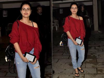 महरूम टी-शर्ट और ब्लू जीन्स में फातिमा बेहद खूबसूरत लग रही हैं।