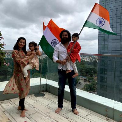 केजीएफ एक्टर यश ने भी स्वतंत्रता दिवस के मौके पर अपने परिवार संग तिरंगा लिए दिख रहे हैं। (फोटो: इंस्टाग्राम)