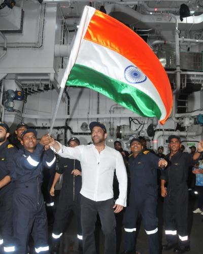 स्वतंत्रता दिवस के मौके पर सलमान खान नेभारतीय नौसेना के जवानों के साथ तिरंगा लहराते हुए इंस्टा पर एक फोटो पोस्ट की है और इसके साथ ही सभी के स्वतंत्रता दिवस की शुभकामनाएं दी हैं। (फोटो: इंस्टाग्राम)