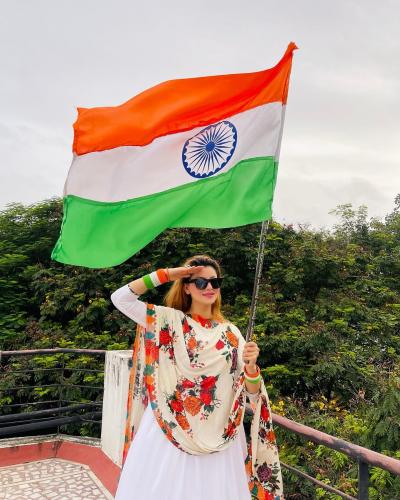 बॉलीवुड एक्ट्रेस उर्वशी रौतेला ने तिरंगा लहराते हुए अपनी तस्वीर शेयर की है और देशवासियों को स्वतंत्रता दिवस की शुभकामनाएं दी हैं। (फोटो: इंस्टाग्राम)