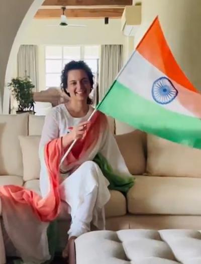 कंगना रनौत ने भी तिरंगा लहराते हुए अपना एक वीडियो अपने इन्स्टा स्टोरी पर शेयर किय किया हैं। (फोटो: इंस्टाग्राम)