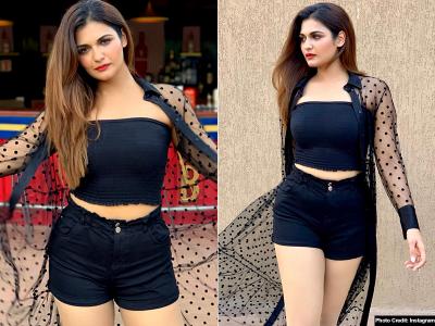 ब्लैक ऑउटफिट आरती काफी स्टाइलिश और हॉट नजर आ रही हैं।