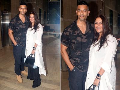 नेहा धूपिया पति अंगद बेदी के साथ आईं नजर