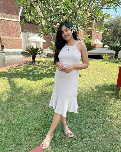 फोटोज में इशिता दत्ता ने फ्रॉक ड्रेस पहने हुए नजर आ रही हैं और उन्होंने अपने बालों में एक फूल भी लगाया हुआ हैं। (फोटो: इंस्टाग्राम)