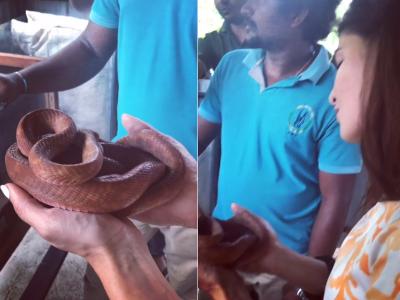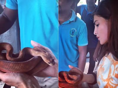 तस्वीरें: जैकलीन फर्नांडिस ने जब हाथ में लिया जिंदा साँप, उसके बाद जो हुआ....