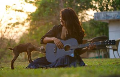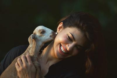 तस्वीरों में देखा जा सकता है कि जैकलीन फर्नांडिस एक छोटी बकरी के साथ टाइम स्पेंड कर रही हैं।