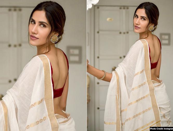 बॉलीवुड एक्ट्रेस सोनाली सहगल का एथनिक लुक इस समय सोशल मीडिया पर खूब वायरल हो रहा है, ऑफव्हाइट कलर की साड़ी के साथ रेड कलर के ब्लाउज में सोनाली कहर ढा रही हैं।