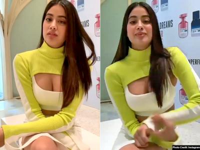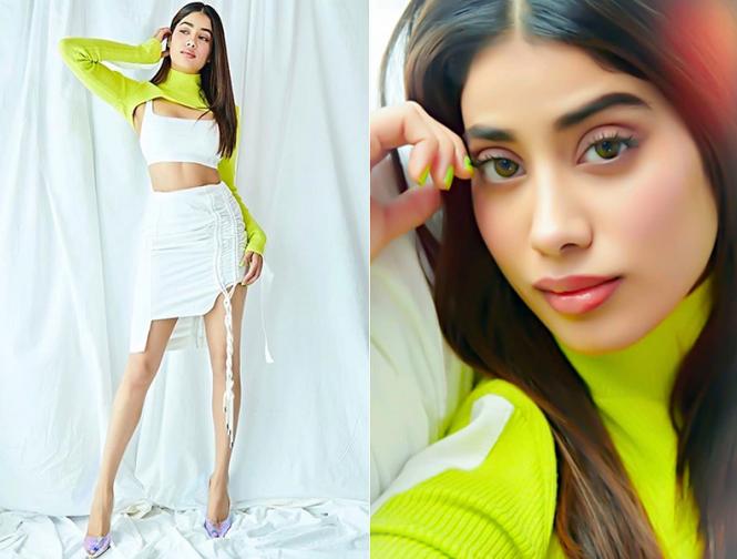 इस फोटोशूट में जाह्नवी ने ग्रीन और व्हाइट कलर कॉम्बिनेशन की ड्रेस पहनी हुई है।