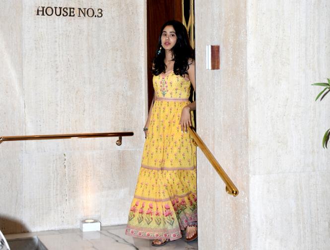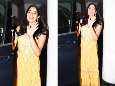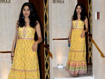 यलो कलर की ड्रेस पहने हुए जाह्नवी इस दौरान बेहद खुश नजर आ रही थी।