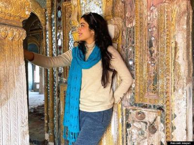 इन तस्वीरों को शेयर करते हुए जाह्नवी कपूर ने लिखा 'शायद मैं थोड़ी फिल्मी हूं'। इन तस्वीरों में जाह्नवी कपूर ने व्हाइट सूट के साथ ब्लू कलर का दुपट्टा भी कैरी किया हुआ है।