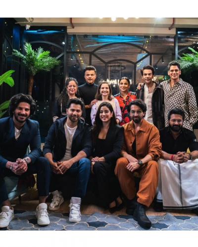 इस तस्वीर में जान्हवी कपूर, वरुण धवन,आयुष्मान खुराना, राजकुमार राव, अनिल कपूर, विद्या बालन, ऋषभ शेट्टी के साथ पोज दे रही हैं। (फोटो: इंस्टाग्राम)