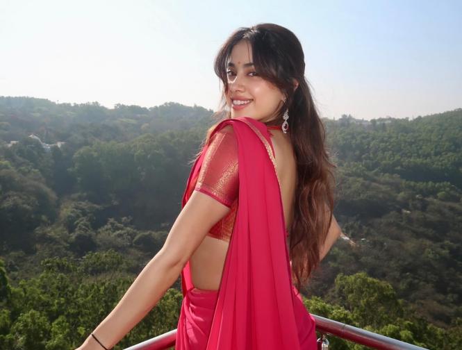 साउथ इंडियन ट्रेडिशनल ड्रेस में Janhvi का सिंपल और प्यारा लुक फैंस को खूब पसंद आया।
