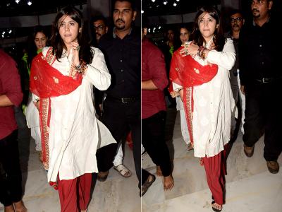 दर्शन करने के दौरान एकता ट्रेडिशनल अवतार में नजर आईं।