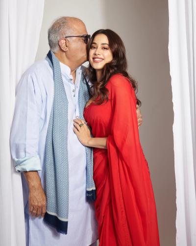 इन तस्वीरों में जाह्नवी लाल कलर की साड़ी के साथ मैचिंग ब्लाउज भी पहन रखा हैं। (फोटो: इंस्टाग्राम)