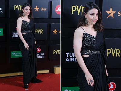 सोहा अली खान ब्लैक ड्रेस में ग्लैमरस अंदाज में दिखीं।