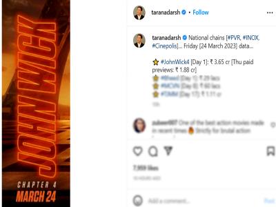 जॉन विक 4 ने पहले दिन बॉक्स ऑफिस पर अच्छा कलेक्शन किया फिल्म ने 3.65 की कमाई की। (फोटो- इंस्टाग्राम)