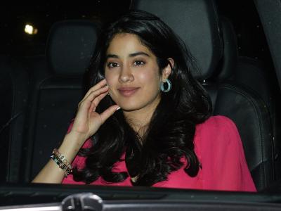 पिंक ड्रेस में जाह्नवी भी यहां पहुंची थी
