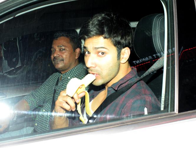 इस दौरान वरुण जिम से बाहर निकलते वक़्त कार में बठे हुए केला खाते हुए नजर आए।