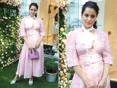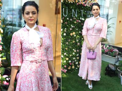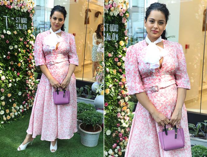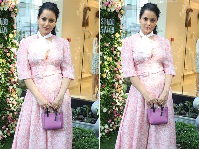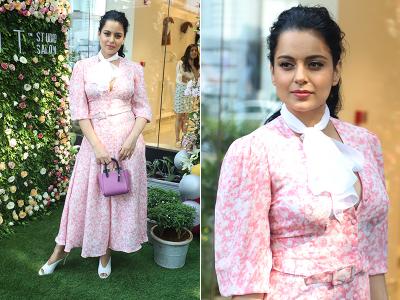 कंगना ने पिंक कलर की आउटपिट पहनी हुई थी