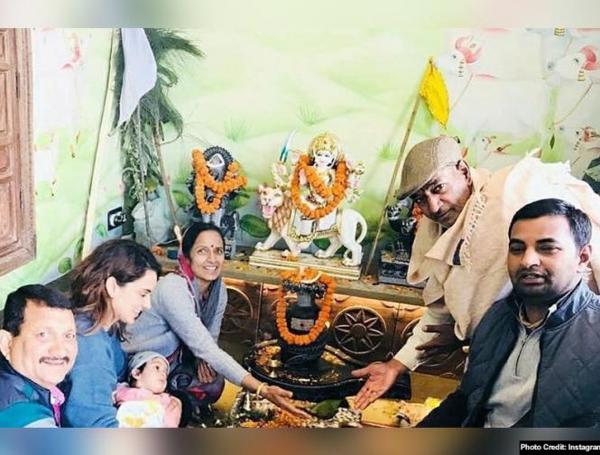 अपने परिवार और माता-पिता की मौजूदगी में कंगना ने पूजा-पाठ किया।