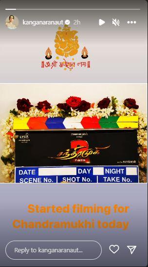अभिनेत्री कंगना रनौत ने ‘चंद्रमुखी 2’ की शूटिंग शुरू कर दी है।