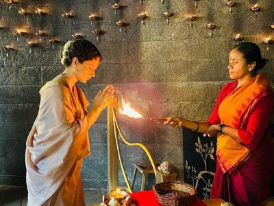 नवरात्रि के आखिरी दिन कंगना रनौत ने लिंगा भैरवी के मंदिर में की पूजा, कहा- 'लोग समझते हैं कि सिर्फ भूखे रहना उपवास होता है'